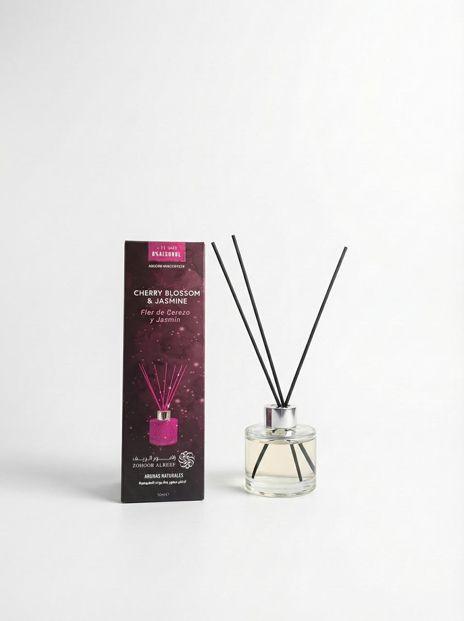 ناشر الأعواد العطري Cherry Blossom & Jasmine من فئة الروائح الزهرية، بتركيبة تعتمد على زيت عطري بدون كحول، ومصنوع بجودة عالية في إسبانيا.